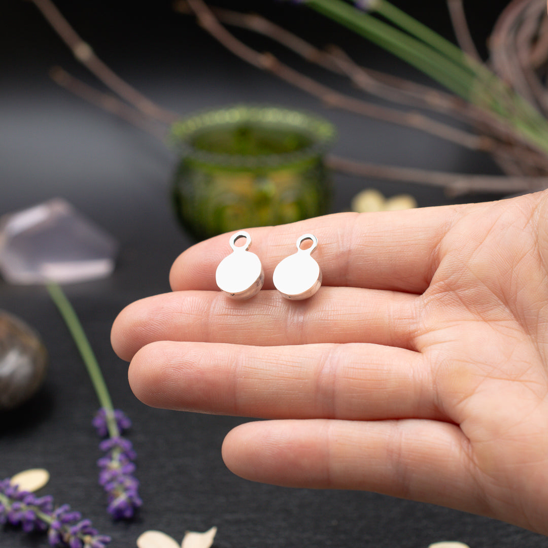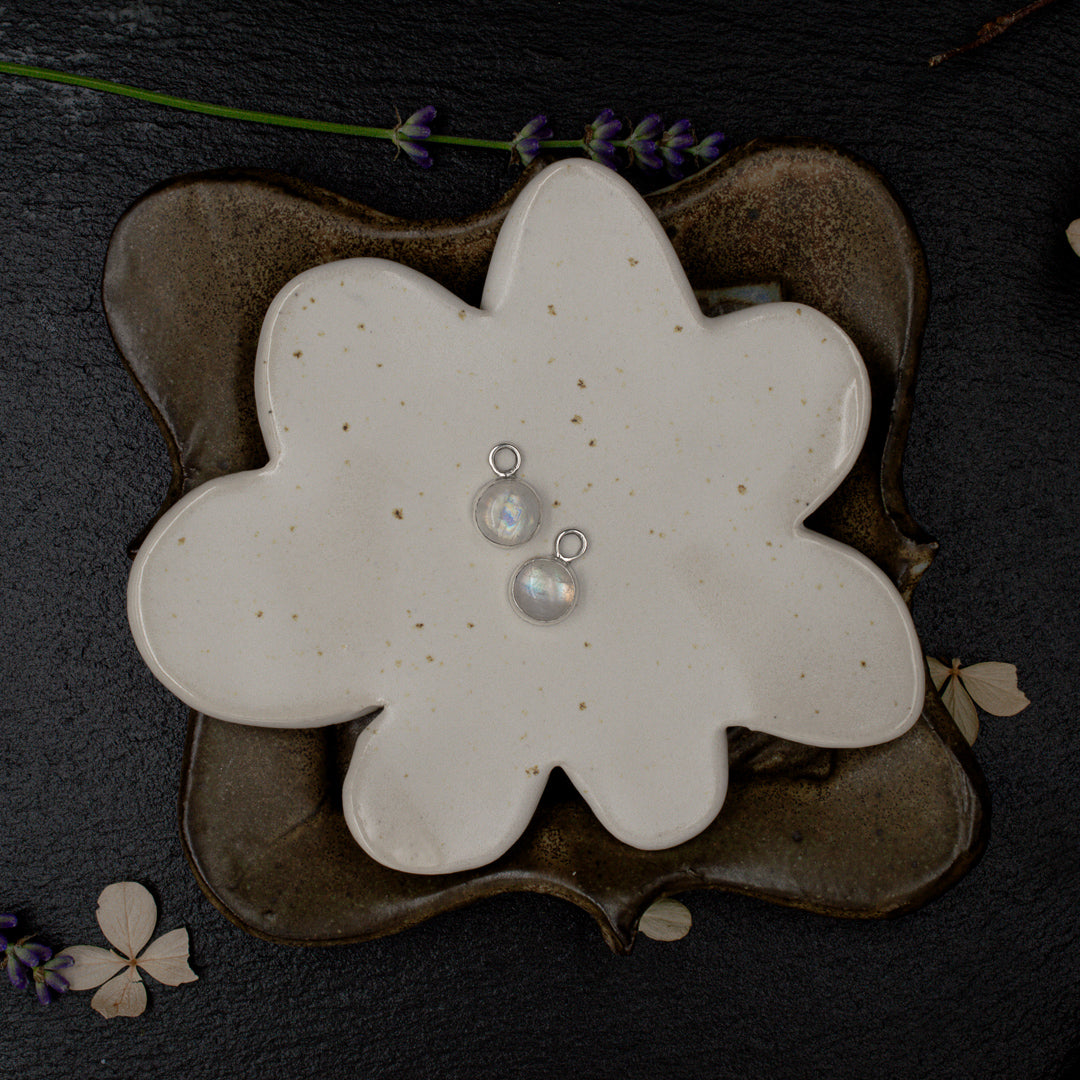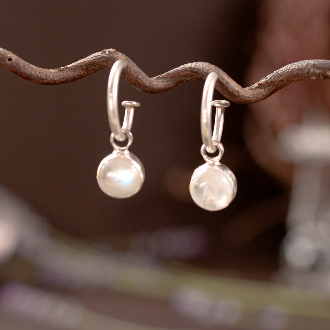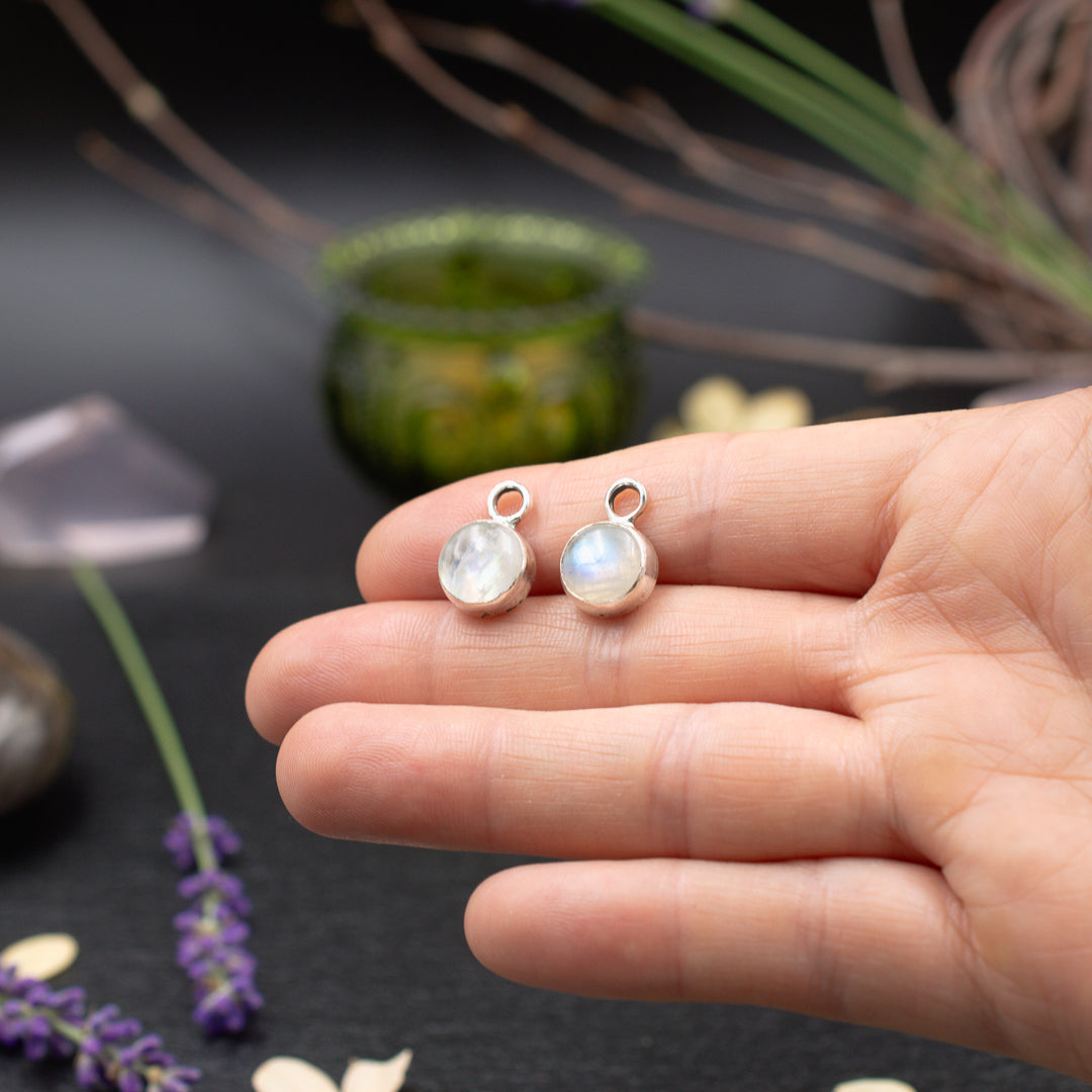 These rainbow moonstone earring charms GLOW! So bright and uplifting. These hoop charms are such an easy way to carry their energy with you everyday.